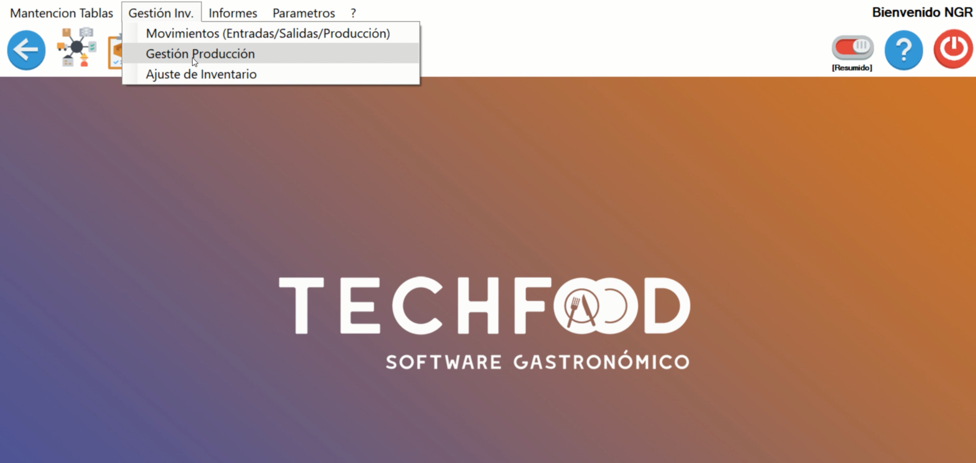 Ubicamos la opción Gestión Producción