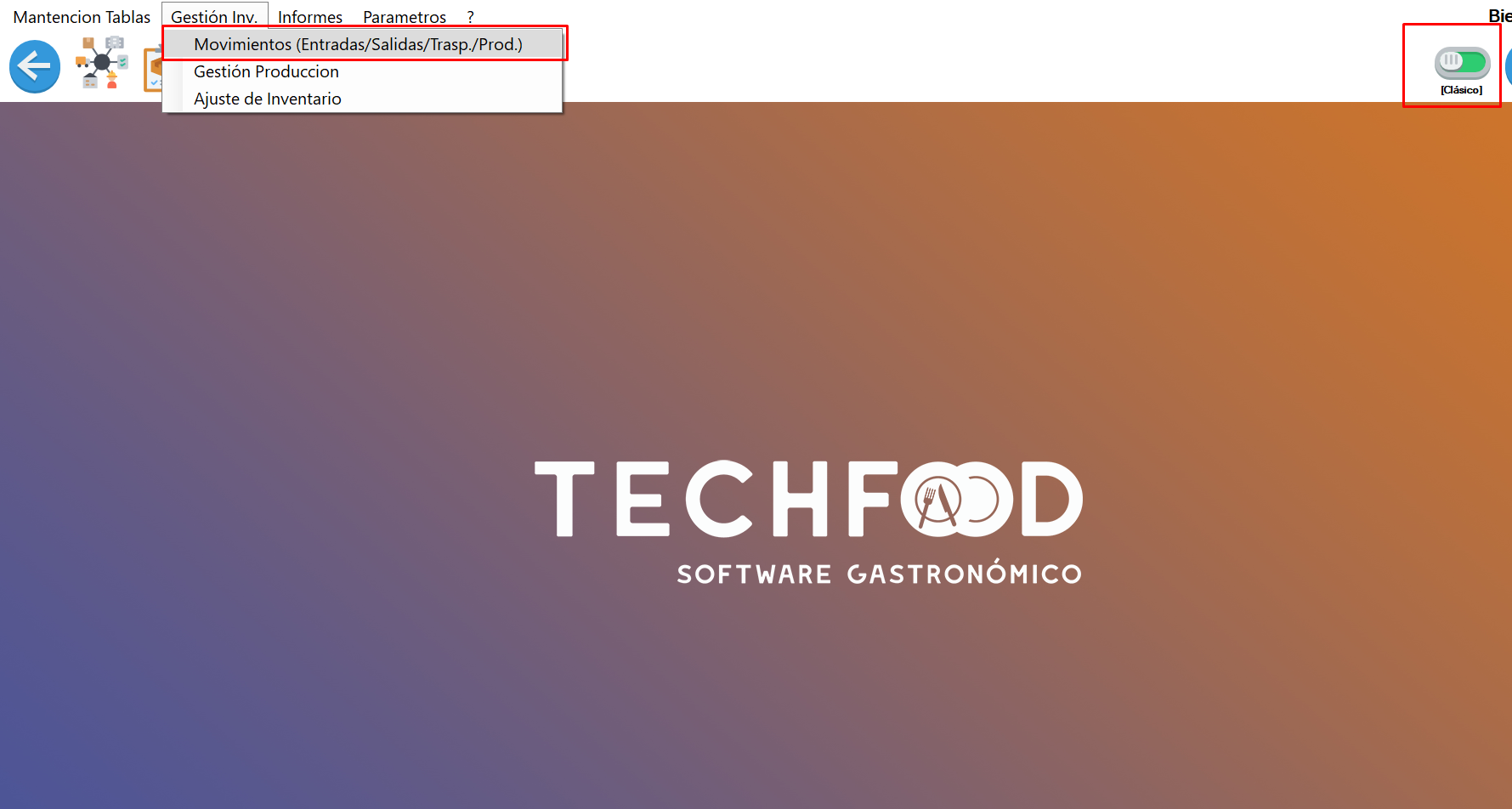 - Ubicamos en el Menú Gestión de Inv. ⇒ Movimientos.
