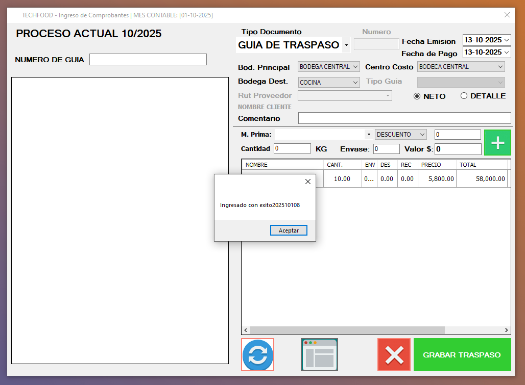 ⇒ y nos genera una Nro. de Guía de Traspaso.